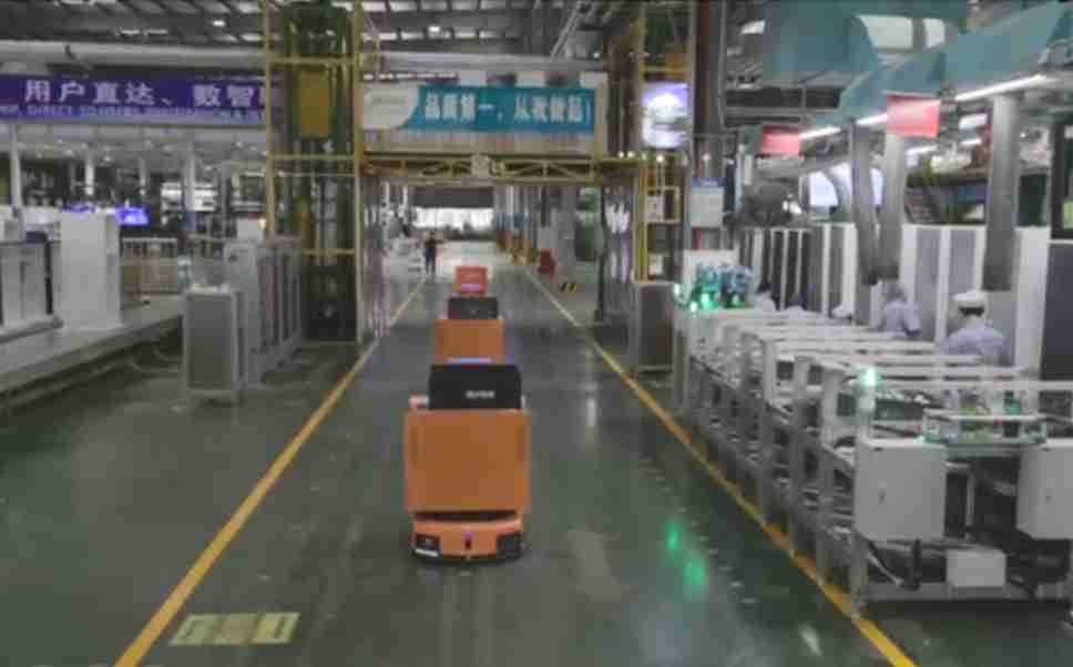 为车载冰箱物流配送打造的智能解决方案,,,包含产中物流通过潜伏举升AMR搬运至线边,,,产后成品物流智能仓储,,,流程包含产中物流智能齐套入库,,,线边安灯叫料AMR智能配送至线边,,,成品入库、、、、出库,,通过无人堆高车机器人,,,智能仓储管理替代人工作业管理,,,实现更高存储、、、更高效率、、更具柔性化的解决方案。。。